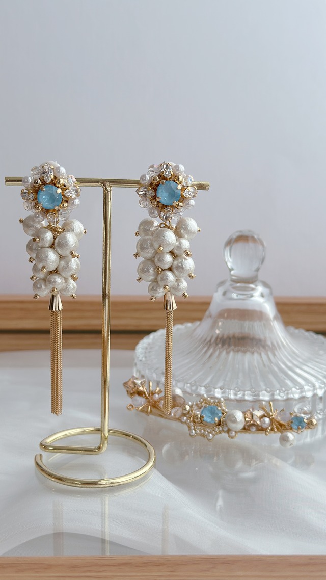 イヤリングに合わせて仕立てたヘアクリップ。 澄んだブルーのストーンとコットンパールを組み合わせ、統一感のある優美なデザインに仕上げています。 軽やかな質感を意識しながらも、コットンパールならではの上品な輝きで華やかさをプラス。 花嫁さまをより美しく引き立てる、存在感のある特別なアイテムです。 挙式はもちろん、前撮りやパーティーシーンにもおすすめです♩ ウェディング用 イヤリング 5500円 ヘアクリップ 3300円 ストーン→クリスタル ゴールデンシャドウ クリスタルスカイイグナイト その他コットンパール ★∻∹⋰⋰ ☆∻∹⋰⋰ ★∻∹⋰⋰ ☆∻∹⋰⋰ 発送について ご購入された日より5日以内と記載しておりますができるだけ早くの発送を心がけさせて頂いております 1万円以上の場合はレターパックプラスでの発送に切り替えさせて頂いております ラッピングについて 当店ご購入された方全てにラッピングをさせて頂いて発送しております プレゼントの場合メッセージカードを控えさせて頂きますので備考欄にご記入ください 修理依頼について 金具の不良などございましたら一度お問い合わせください 対応させて頂きます 何か質問がこざいましたらご購入前によろしくお願い致します。